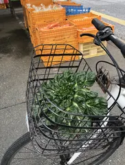 なんかいいですよね〜こーゆーの。 自転車かごにもらい物か?ターサイ!!
