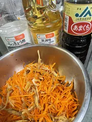 人参🥕食べようと思えば食べれるけど食べなくても良い😅 でも これだけは ガブガブ食べれる一品 人参とさきいか調味料はマーク品3点 さきいかから味が出るので 人参臭さがなくなる🤭💓