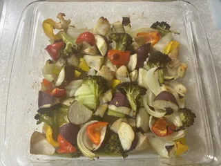 塩こうじ野菜のグリル焼き ほったらかしで、美味しい野菜が食べられます😊【材料 21×21センチの耐熱容器】 れんこん 150g さつまいも 150g 玉ねぎ 150g ブロッコリー 100g パプリカ(赤と黄) 合わせて100g エリンギ 50g調味料 塩こうじパウダー 1袋 にんにく(チューブ) &nb