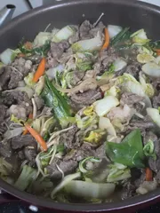 1日過ぎていました 塩こうじパウダーレシピコンテスト、昨日までだったのですね。今日が振替休日で、お休みだったからか、今日が23日だと思い込んでいました。わが家の白菜が食べられるようになったので、切ってきました。虫食いだらけですが、虫も食うほどおいしいんだと思い、すき焼き風煮を作りました。すき焼きというには、お肉の量も少