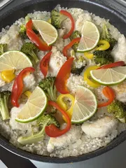 塩こうじレモンパエリア 道の駅しろいしで見つけたレモン白石町の特産レモンで「璃の雫(りのしずく)」とネーミングされたそうです😊割ったらこんな感じ、種があまりなくてみずみずしいレモン🍋酸味も強くなく、食べやすいレモンです。これ見てたらなんか作りたくなって、塩こうじパウダーと合わせてパエリアにしてみました😊 【材料】