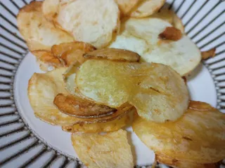 加工用じゃがいもでポテチを作る! 主人が職場から貰ってきたので、早速ポテチを揚げました。塩を振ってシャカシャカ、やっぱり出来立ては美味しいですね~