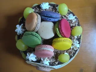 ようやく終わった誕生日! 生クリームを中に沢山入れたらクリーム足りず、横はクリーム無しで仕上げました!市販のマカロンでなんとなく映えるかな(笑)当日にスポンジから焼いて、どうなることかとヒヤヒヤでした~(笑)中のフルーツは苺とキウイで、周りはシャインマスカットに!美味しくいただきました!