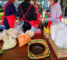 JA女性部豚汁振る舞い🎶🎶   JA女性部によります 豚汁200食の振る舞いの為の準備🎽 おそろいの 笑味ちゃんエプロン着用です。   材料は 前日にカットしてあります💓  笑味ちゃんエプロンは 割と長いサイズなので 半分写メ。 豚肉は 一度に焼いて火を通します🥢(ガ