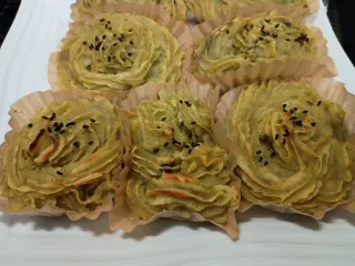 箱で購入したさつまいもが傷みだした… 急いで加工しましたが、普通に炊飯で作ったさつまいもが1番甘み感じました。スイートポテトには生クリームや砂糖もたっぷり入っているのに…娘にしぼってもらいました。卵切らしていて、表面に塗れてないので見た目がイマイチですが、美味しくできましたよ〜😊